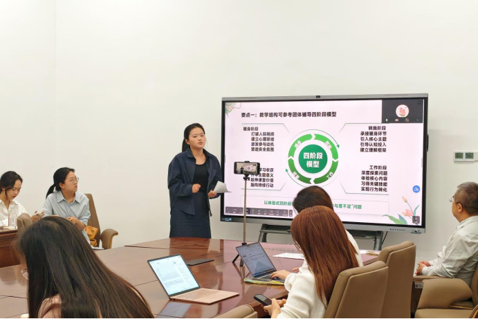 教学经验分享环节中,黎星妍老师以《我的弹力球——心理韧性提升课》为题,通过弹力球实验引出“心理弹性水平”概念,结合理论讲解、案例分析和自我觉察练习,示范如何引导学生觉察内部能量、挖掘外部支持,掌握提升心理韧性的方法。刘婧彦老师以《数字时代下的注意力保卫战——心灵空间整理术》说课,呈现课程完整设计流程,突出严谨的教学思路,既讲解相关理论,也分享具体注意力保护技巧,强调课堂体验与课后延伸相结合。